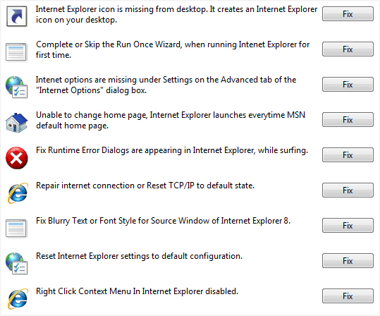 The solutions to repair and fix 50 common Windows annoyances, issues & problems have been categorized under 5 tabs, viz : Windows Explorer, Internet & Connectivity, Windows Media, System Tools & Misc Additional Fixes. Repair and Fix Windows Problems by yourself with FixWin Utility